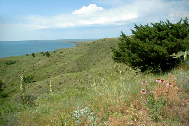 Narrows Interpretive Area Trail, Lower Brule Sioux Reservation Immerse yourself in the vast, sweeping prairies of the Great Plains of South Dakota, the land of the buffalo! We are the Kul Wicasa Oyate (Lower Brule Sioux Tribe), a band of the Lakota Nation. We warmly welcome visitors to our homeland along Mni Sose, the Missouri River, a place of endless recreational and educational opportunities and unforgettable experiences! The Native American Scenic Byway winds through the valley breaks and broad river terraces of the Reservation, now and then rising to the river bluffs, with their spectacular views of the Missouri and the vast grasslands that extend west over the horizon to the Black Hills. The Buffalo Interpretive Center, on one of the Tribe's buffalo pastures along the Byway just seven miles southeast of Ft. Pierre, offers visitors a glimpse into the life and traditions of the Lakota people, past and present. The gift shop offers craft items made by local artisans. The Reservation is rich in natural life. Pronghorn antelope, and mule and whitetail deer, roam freely, there are prairie dog towns scattered across the uplands and valleys, and the Tribe maintains a six square mile wildlife reserve for buffalo and elk. Pheasants, wild turkeys and other game birds are abundant, and Lake Sharpe, a Missouri River reservoir, teems with walleye and other fish. The river valley is a natural focus for migratory birds, with enormous flights of snow geese and Canada geese covering the skies in the spring and fall seasons. The Visitor Information Center in the town of Lower Brule provides current information on attractions, activities and summer programs. The annual Lower Brule Fair, Powwow and Rodeo is a colorful, exciting, and highly recommended stop the second weekend in August. Lower Brule Sioux Tribe Administration and Business Directory |